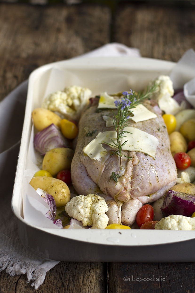 Ma sia che ho preso un pollo ruspante stra favoloso e che dopo questa sfida stupenda mi sa che lo faccio a NAtale???…Chiedi al macellaio…te lo trova uno…sicuro 😉 …. sento il profumo dal tuo forno tra le verdure e il polletto!!